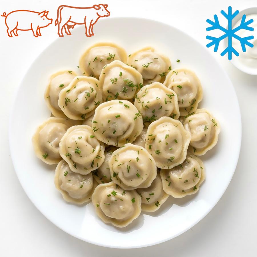 Мы используем только отборную охлажденную свинину и нежную телятину, смешивая их в идеальной пропорции для сочной и ароматной начинки. Тонкое, эластичное тесто, замешанное по классическому рецепту, надежно сохраняет весь сок внутри. Каждый пельмешек слеплен вручную или с использованием оборудования, имитирующего ручную лепку, чтобы обеспечить идеальную форму и текстуру при варке.
