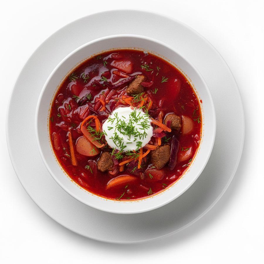 Свежеприготовленный красный борщ в контейнере 2lb.